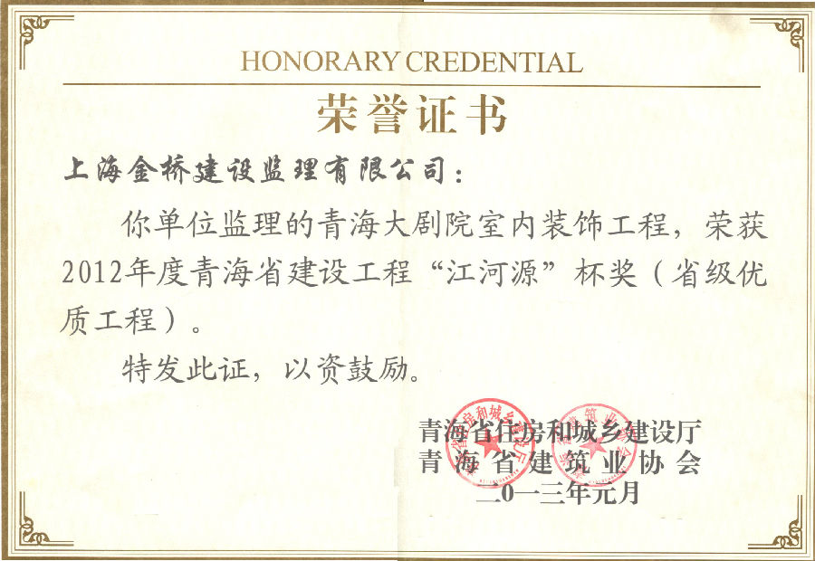 青海大剧院内装饰工程获青海省“江河源”杯