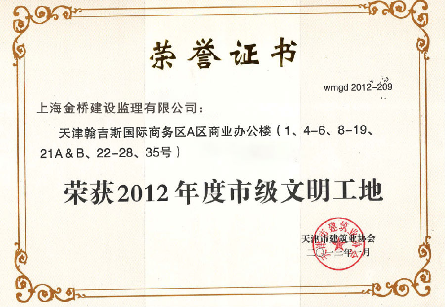 天津翰吉斯国家商务区获文明示范工地