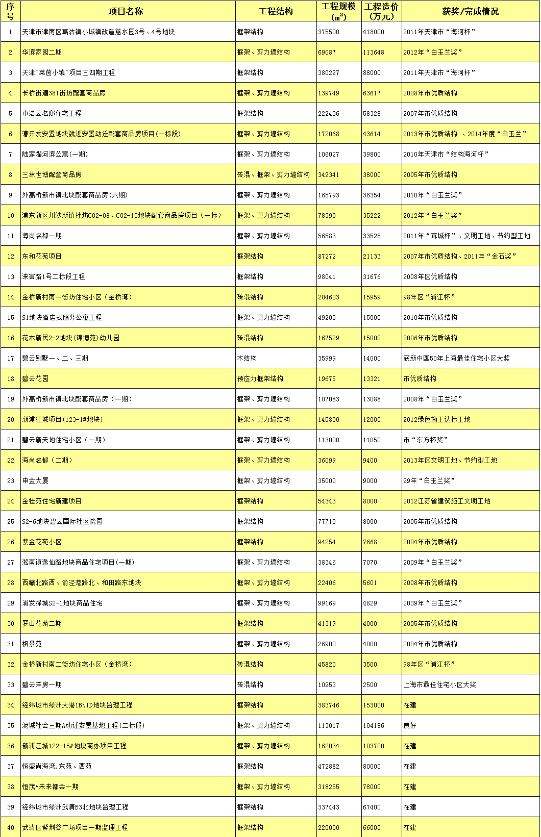 部分住宅工程监理项目业绩一览表