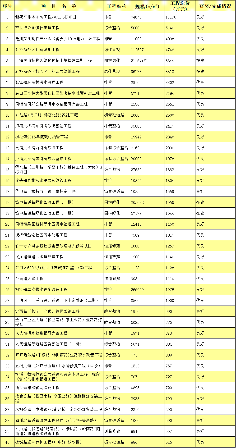 部分市政道路改建、养护工程监理项目业绩一览表