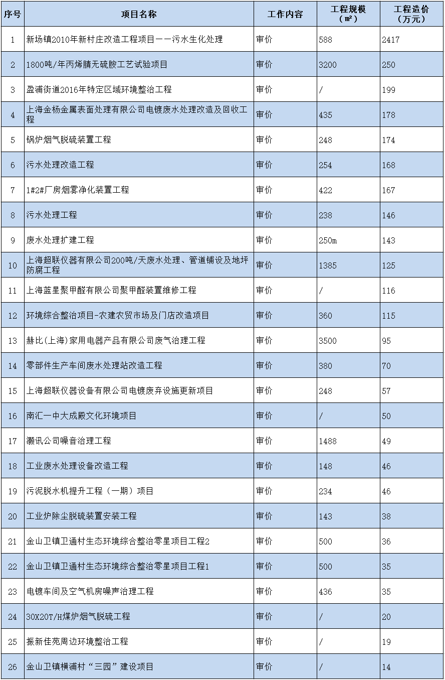 环保工程造价咨询业绩一览表