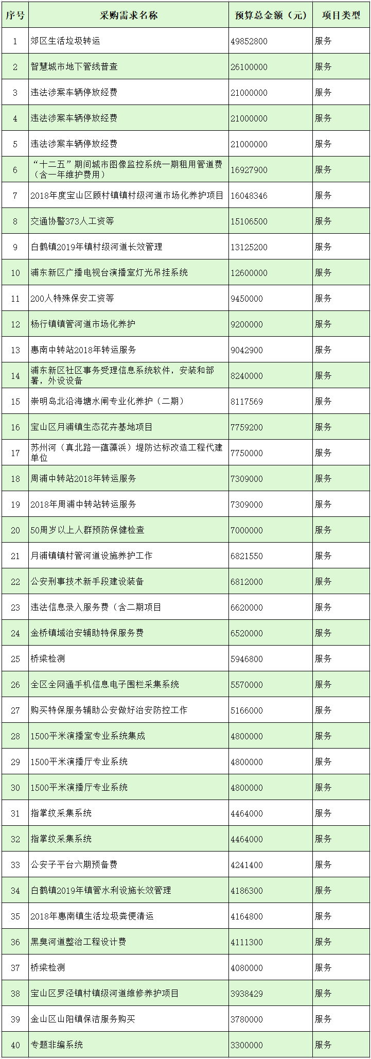 部分政府采购服务采购业绩一览表