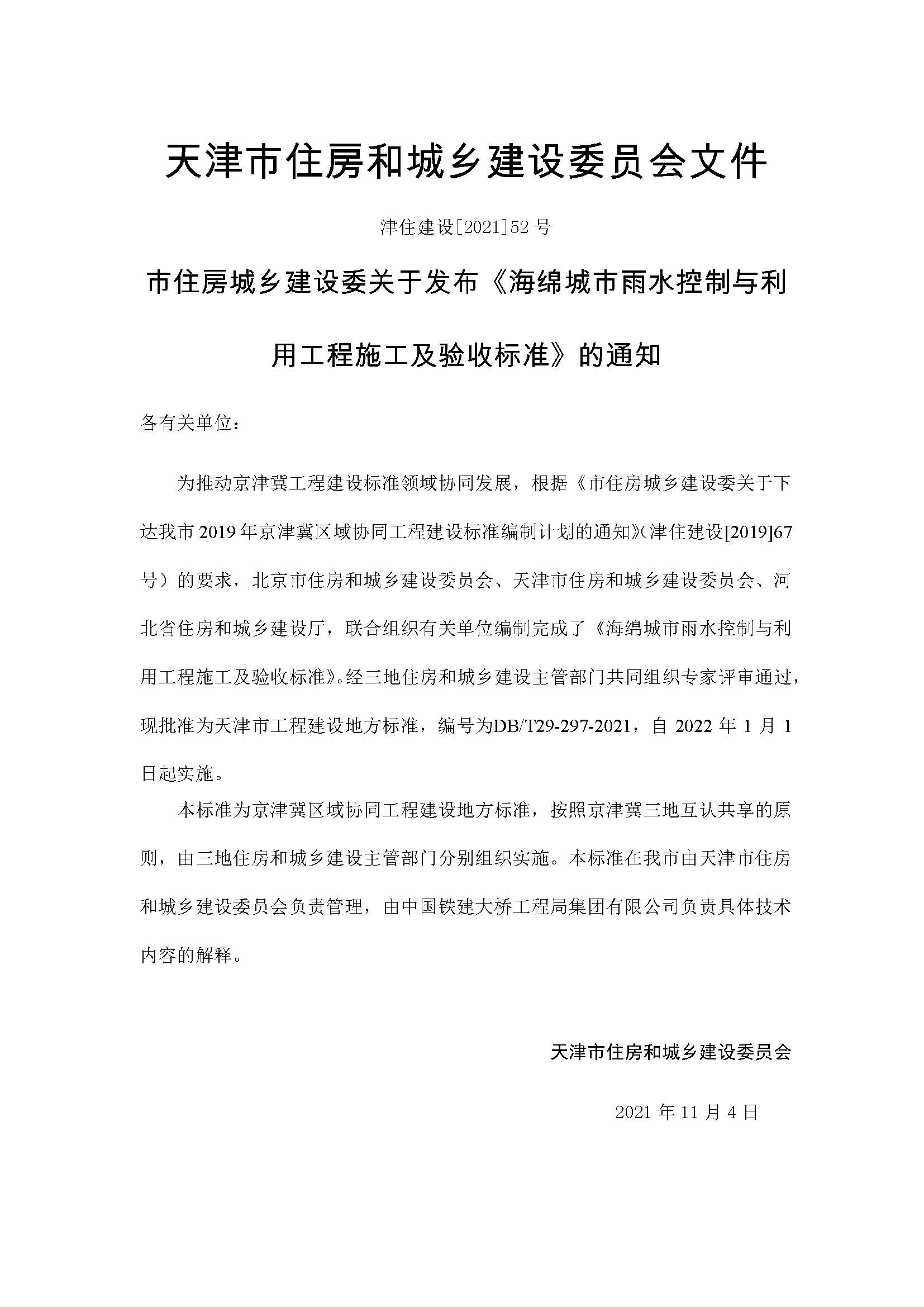 天津市海绵城市雨水控制与利用工程施工及验收标准